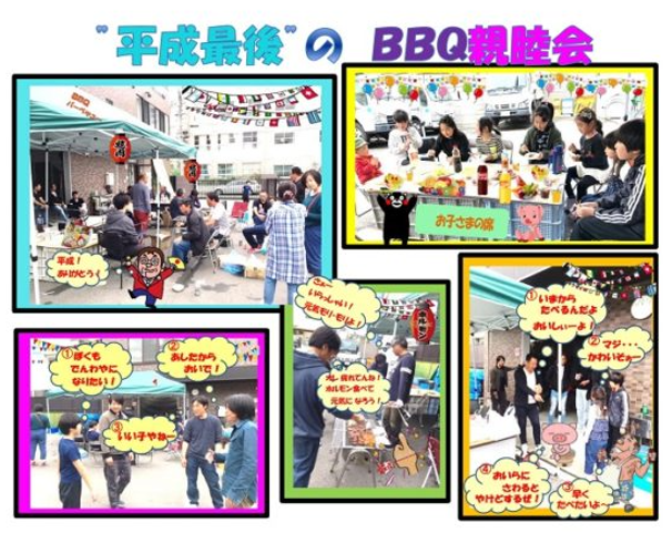 平成最後の日にBBQ親睦会 2019-04-30 07:01:00 UTC 平成最後の日に、社員・協力会社の方々が集まり、BBQ親睦会が開催されました。 この日は、週刊予報で雨の心配もありましたが、皆さんの平素よりの心掛けのお陰か、 雨も上がり、11時から夕方のお開きまで、大変賑やかで楽しい時間となりました。 今回は、奥様やお子さまも多数ご参加され、フルーツポンチ作りや、焼きマシュマロ も人気メニューでした。