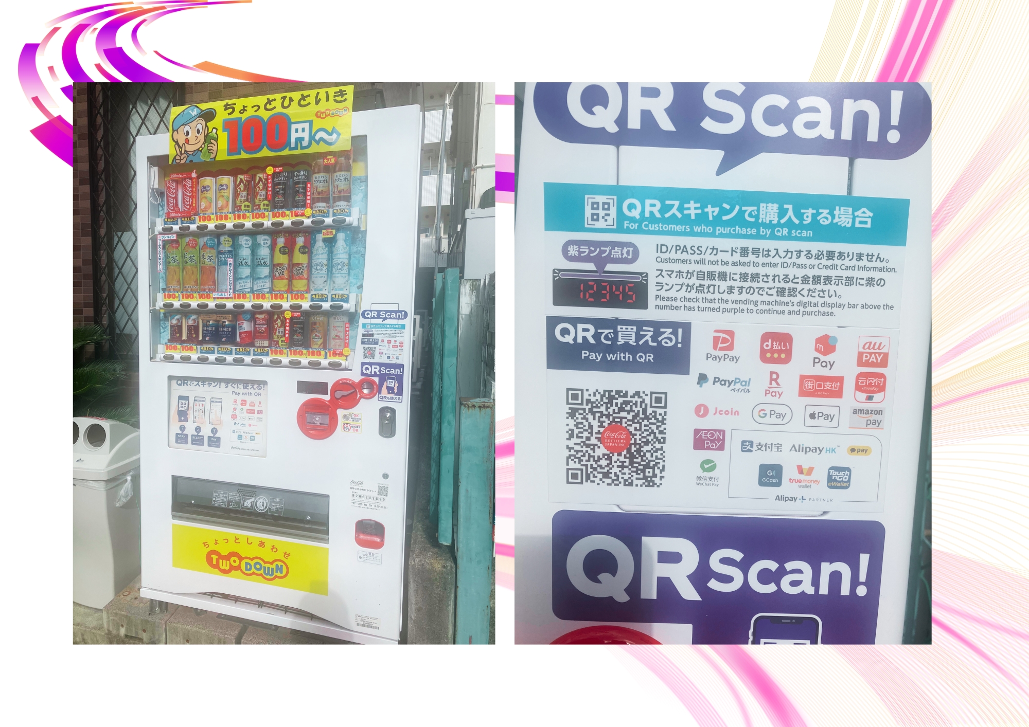これまでお世話になった旧自販機に「ありがとう」そして新しい仲間に「ようこそ!」ほぼ100円商品の自販機になりました。